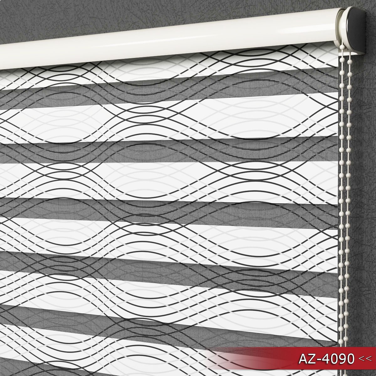 Duo Rolgordijn - Semi-transparant - Wit Wave Design aantal